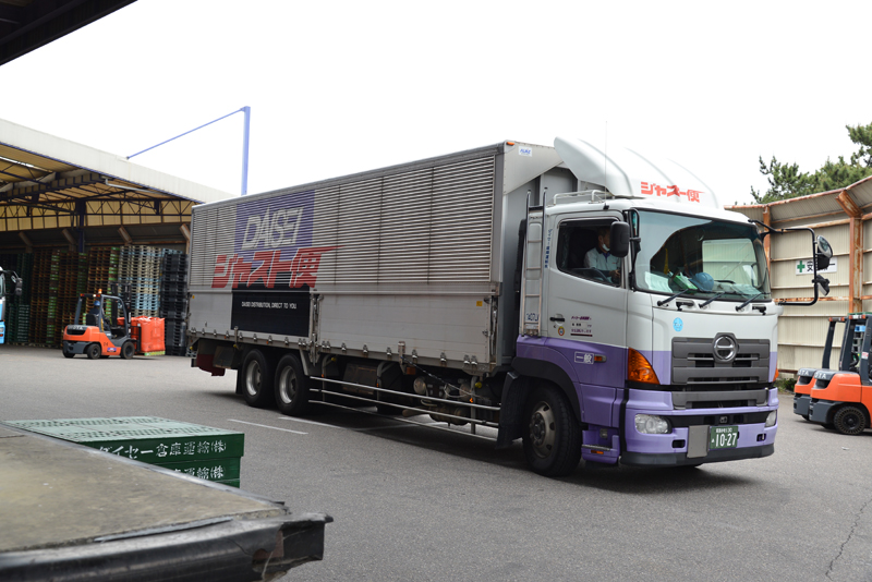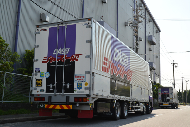 乗合バスと同じ方式で、荷物をダイセーで引き受け、同じ納入先のトラックに載せて納品するため、費用と時間の無駄が省けます。